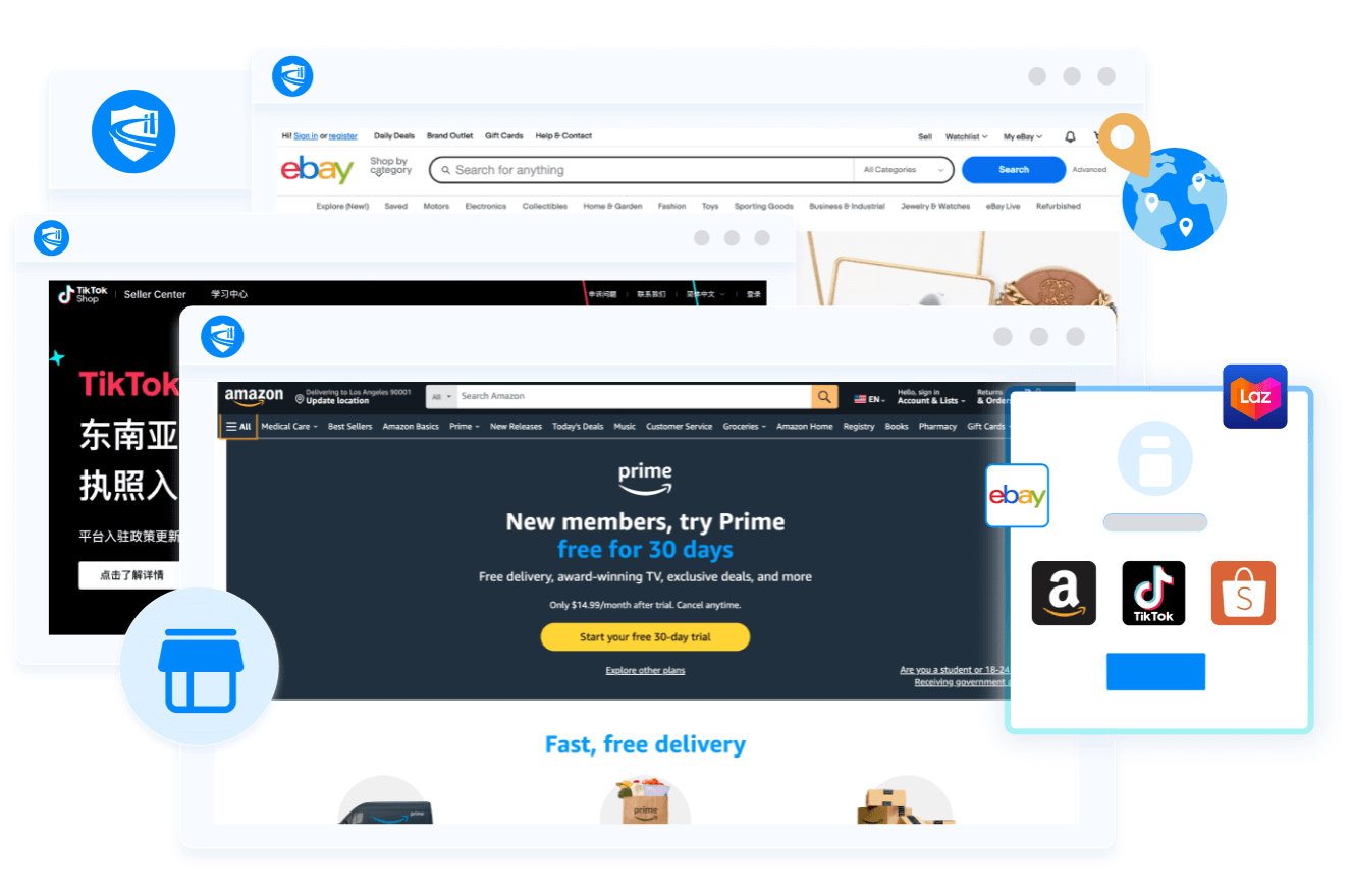 支持批量綁定多平臺店鋪,并為每一個店鋪分配純凈、安全、獨立的網(wǎng)絡環(huán)境。